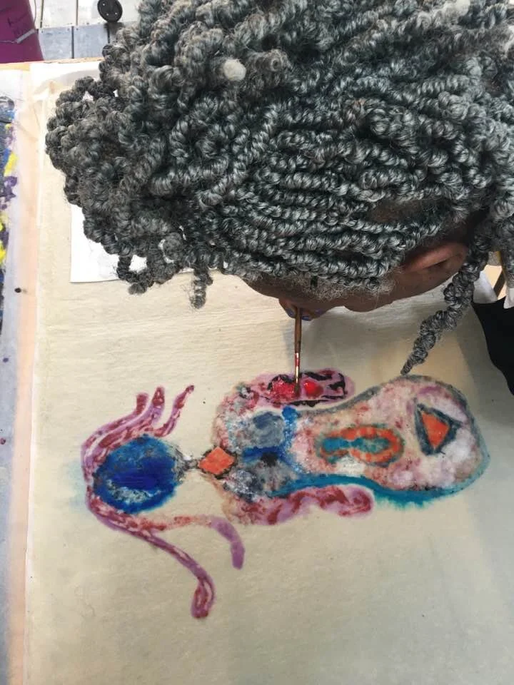Artist collaborations have included Buzz Spector, Oletha DeVane, Chris Kojzar, Randi Reiss-McCormack, Ellen Hill, Preston Sampson, Nancy Sausser, Elzbieta Sikorska, Sharon Fishel, Lisa Shreirer, Erin Devine, Maria Barbosa, Susan Firestone, Elsabe Johnson Dixon, Cheryl Edwards, Aziza Gibson Hunter, Andrea McCluskey, Tara Sabharwal, Mary Ting, Phil Qian, Soledad Salame’, Chris Mona, Mia Halton, and William B. Adair. Visit Facebook and Instagram to view more photos of artist collaborations.